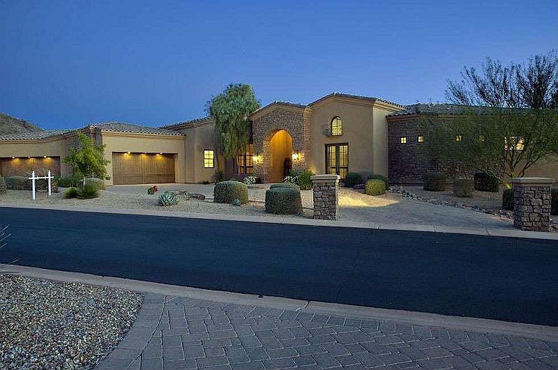 Meticulously maintained and sophisticated, yet casual describes this entertainers dream home resting on the best view lot in the neighborhood. Gourmet kitchen with two dishwashers, dual Sub-Zero refrigerators, Viking 8-burner gas stove and built-in Dacor Espresso machine. This home also boasts a state-of-the-art media room, magnificent laundry/ craft room, and two separate backyard areas. Each bedroom has a private full bath and walk-in closet. The Master bathroom has a steam shower and large Jacuzzi tub. The home has soaring 15ft ceilings throughout and an office with a private entrance. Bright and beautiful windows capture the magnificent view of Arizona sunsets. Stunning views of the city can be enjoyed from the outdoor living room or while relaxing in the pool or spa.