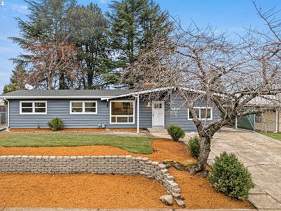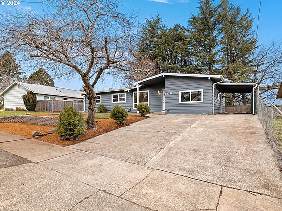 Discover this tastefully remodeled Mid-Century 3 Bedroom and 2 Bathroom Home. Step inside this thoughtfully updated single-level home, where timeless design meets modern comfort. This Mid-Century gem offers a harmonious blend of style and functionality. Key features include a vaulted and light-filled living room with fireplace and dining area that seamlessly flow into the beautiful kitchen. The exceptionally crafted and spacious kitchen boasts solid wood cabinetry with soft-close hardware and dovetailed drawers, quartz countertops providing ample workspace, a stylish tile backsplash, stainless steel appliances and abundant recessed LED lighting. Refinished oak hardwood floors grace the main living area, dining room, and bedrooms. Durable, waterproof LifeProof vinyl plank flooring enhances the kitchen, bathrooms, bonus room, and laundry area. Both bathrooms have been updated with new tub and shower, vanities, solid surface countertops, modern fixtures and tile surrounds. The flexible bonus room can easily be used as a 4th bedroom, home office, casual living space, or hobby studio. All NEW exterior and interior paint, doors, plumbing supply and drain lines, plumbing fixtures, electrical wiring, service panel and lighting. Front and fenced back yards are freshly landscaped with new sod, bark, and gravel. Enjoy year-round outdoor living on the spacious 33x11 covered patio and a carport for convenience, both with rebuilt covers. Additional improvements include vinyl low-e windows, decommissioned oil tank, and a replaced sewer line to the street installed in 1996. Nestled in the Russell neighborhood, this home offers proximity to shopping, parks, restaurants, transit, and freeways. Don't miss the opportunity to make this meticulously updated Mid-Century residence your own. Schedule a viewing today!