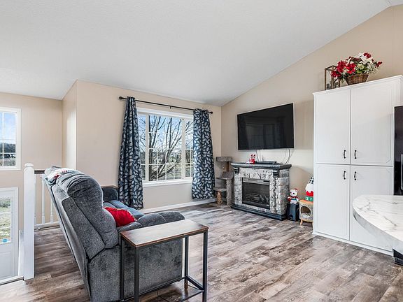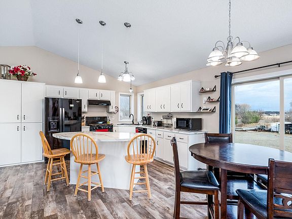 Updated countryside home on 2.5 acres features 4 bedrooms, 2 full bathrooms, master with walk-in closet, open concept living-dining-kitchen with center island and vaulted ceilings, large walk-out lower level family room. Insulated and heated 3-car attached garage keeps your vehicles toasty on those cold winter days. Home is located about an hour drive from the cities in a quiet neighborhood.