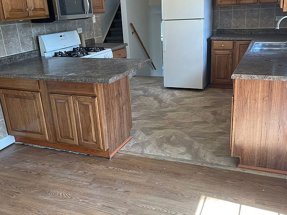 Three bedroom, two bath, central air and heat. Finished basement with laundry room. Fenced in yard with two car detached garage. Renter pays all expenses. First and last month rent due at lease signing.