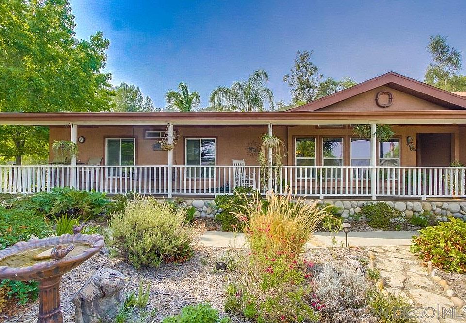 Opportunity to reside in a beautiful single story home, situated on over 2 acres of fully fenced private land. Surrounded by lush & mature landscaping, there are several peaceful outdoor living areas to be enjoyed. Highlights include a 40 ft long front porch with amazing views, vaulted ceilings, dark laminate wood flooring, dual pane windows, walk in pantry, cul de sac setting with a private gated entry, fruit trees, RV parking, jacuzzi, bonus 1,200 sf detached barn with extra storage, and so much more!