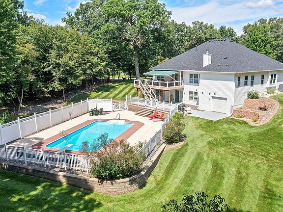 This one owner home is located in Oakwood Forest, a quiet community tucked away amongst a beautiful forest of trees including Oak, Maple, Birch, Pine and other foliage, to create a very private family oasis. The sellers designed and built this home in 1999, have raised their children and are ready to downsize. This home was designed for entertaining! The in ground heated pool brings lots of family and friends and you can typically use the pool for 5 months each year. The seller had very large gatherings for holidays with their family and will miss all the space to continue the tradition. If you like to cook and bake, you will appreciate the gas stove top and double ovens, along with an abundance of oak cabinetry, 2 double pantries, center island work space, and new appliances in 2023. You will have options for dining; formal dining room, kitchen area or deck, which was just built in the summer of 2022. It is maintenance free with pretty accent lighting on the posts and an awning for shade. You will have a fabulous view of the in ground pool and gorgeous wooded back yard. The ceilings are 9', vaulted ceilings in the living area, plus a gas fireplace and real hardwood floors in the entry, dining, and down the stairs to the lower level. There is a half bath for guests, plus a main floor laundry room complete with sink, storage cabinets and folding area. Three bedrooms on the main level include a Jack and Jill bath, plus the primary with private ensuite with jetted tub and glass block walk in shower. Bedrooms 4 and 5 are in the lower level, along with another full bath. The family room is very spacious and features a wood burning fireplace. Walk out to the lovely patio and pool area. There is so much extra storage space, plus a 17x18 tuck under garage for storing the gardening tools, lawn and pool equipment. The furnace/AC was replaced in 2021, there are 2 hot water heaters and 1 horse water pump. The main 3 car garage is 936 SF and is heated and insulated, leaf filter and poured landscape curbing were added in 2022. The roof was replaced in the summer of 2021, There is a pretty landscaping/retaining walls around the home. The garden is in and all fenced! Of course you will enjoy all the entertainment that deer bring, along with great bird watching, turkeys and other small wildlife. This is a low traffic dead end street and is a great setting for raising your children. Enjoy country living with just a short drive to conveniences. There is still time to use the heated pool!