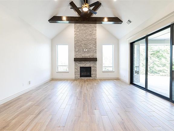 This Lynne Bonus Room floor plan includes 3,805 Sqft of total living space, which features 3,425 Sqft of indoor living & 380 Sqft of outdoor living space. There's also a 650 Sqft, three car garage with carriage doors and an in-ground storm shelter installed. This new build offers 5 bedrooms, 3 full bathrooms, a powder room, a mud room, a utility room featuring deco tile flooring and a utility sink, an oversized bonus room, and tons of extra space for any and all activities. The great room is outstanding and features a gas fireplace with a pinebox mantel and a stacked stone detail to the ceiling, eggshell paint on all walls, large windows, a luxurious 3-panel sliding door, rocker switches throughout, wood-look tile, Cat6 wiring, a ceiling fan, and a breathtaking cathedral ceiling with crows feet that extends from the living room to the kitchen. The up-scale kitchen boasts an oversized island with gold carrara countertops and a trash can pullout, 3 CM countertops, custom-built cabinets to the ceiling with glass and lights in the uppers, modern tile backsplash, stainless steel appliances, including a 5-burner cooktop and double ovens, a butler’s pantry, a separate walk-in pantry, and more wood-look tile. The primary suite offers a sloped ceiling detail with a ceiling fan, large windows, Cat6 wiring, and wood-look tile flooring in the bedroom, bathroom, and closet! The primary bath features a batwinged vanity with framed mirrors and custom-built cabinets with hardware, 3 CM countertops, a private water closet with an elongated toilet, a free-standing tub, a European walk-in shower featuring a full length shower bench, and an extra storage closet. We expanded the outdoor living by adding a patio extension behind the utility room/primary bath. All bedrooms and bonus room feature Napa padding flooring. The outdoor living section has a wood-burning fireplace, a gas line, and a TV hookup. This home also features a 5th paint color and blinds.