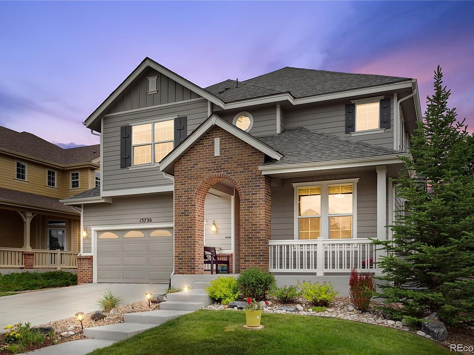 Welcome to this immaculate home at 13736 E Weaver Ave with mountain views, most desirable floor plan and open view. The home has a grand entrance to foyer leading to great room with double ceiling and gas fireplace. The main level has high end Brazilian Cherry hardwood flooring throughout. The home office has huge windows with French doors. The kitchen has bright open layout with tall kitchen cabinets, stainless steel appliances, double oven, granite countertop, breakfast nook with bar area and walk in pantry. The primary suite has huge windows with ensuite 5-piece bathroom and huge walk-in closet. The laundry room comes with washer/dryer and built in cabinets. The basement has sump pump and radon mitigation system. The basement has insulation throughout and rough in for bathroom.