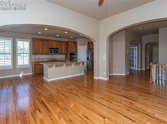 Beautiful Home located near The Club at Flying Horse-A private golf, tennis, and athletic club. This home has fantastic views of the front range, city, and the Air Force Academy. This ranch home is a 4BR, 3BA and a 3 car garage. It features a spacious gourmet kitchen with granite counters, center island and stainless steel appliances. Master Suite features a luxurious 5-Piece Bath, Country Shutters, & a Walkout to the Backyard. Fenced backyard for private relaxation & entertaining. Walking distance to D20 Discovery Canyon.