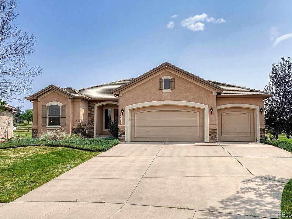 Welcome home to this immaculate Ranch style ,stucco home with 3 car garage in prestigious Flying Horse neighborhood. Located in a cul de sac with large open area surrounding the back yard. Just minutes from I 25 with convenient Northgate Rd. shopping and desirable Academy District 20 schools This one owner home has had meticulous care and is in move in condition with its freshly painted interior. No exterior lawn care worries for you because you will be part of Evergreen outdoor servicing area. Entering the front door you will be drawn to the living room with its beautiful built in entertainment center with cozy gas fireplace perfect for conversation. The heart of the main level is the spacious open kitchen designed with loads of counter space. High quality 42' wood upper cabinets plus pantry for great serving and storage. All appliances are included. The dining room, adjacent to both kitchen and living room, will accommodate your large dining table and hutch. Patio doors lead to your easily accessible level concrete private patio. Delightful Master bedroom with seating area has an en suite 5 piece bath with adjoining walk in closet. Second bedroom located near the front door is currently being used as an office. A full bath is adjacent and handy for guests. A combination mud room/ laundry room leads to the garage and completes the well designed main level. Garage is completely finished inside for insulation and ready for your workshop. The full basement is completely finished with 3 large bedrooms and a huge rec room. Pool table is available to remain with the house if the buyer desires to keep it. Have your furniture delivered, move in and feel right at home in elegant , peaceful surroundings. Some remaining furniture may be for sale by separate agreement.