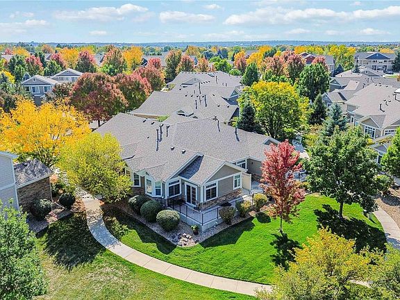 Coveted Villas at The Broadlands—A picturesque, serene setting for year-round enjoyment! The large wrap-around porch is perfect for morning coffee with friends or a sunset glass of wine. This meticulously kept community offers easy access to outdoor activities and breathtaking views. As you step into this pretty home, you will be immediately struck by the open floor plan full of natural light. The oak flooring and fresh paint make the space feel modern and inviting. Built-in features and a gas fireplace make for cozy winter nights and add to the home's overall ambiance. The eat-in kitchen is a chef's dream, equipped with stainless steel appliances, a gas range, ample cabinet space, and gorgeous granite countertops. The primary suite is conveniently located just off the main living space, with more abundant natural light, a slider door entry, and a private patio—a five-piece bath with a large soaking tub and double closet space. The secondary bedroom is versatile and can be used as a guest room or a private study-guest bathroom just out the door. The finished basement is FULL of potential and possibilities, with another bathroom located downstairs for those times with a house full of guests. The oversized two-car garage with tons of storage is perfect for storing all your "Colorado" gear.