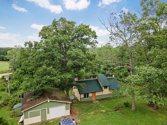 This property is perfect for the family that wants some acreage for hunting, gardening or just enjoy some quiet country living. 30 min from Springfield, 20 min from Rogersville. This unique property sits on over 6 acres of mostly wooded land. The 1400 sq ft home offers an open floor plan down stairs, common area between upstairs bedrooms updated bathroom, updated 200 amp elect. panel, new septic & new roof in 2021. The detached garage is half converted to a shop with power. There is an additional out building in back with tons of storage and a chicken coop that is waiting for your personal touch. Security cameras stay with the home.