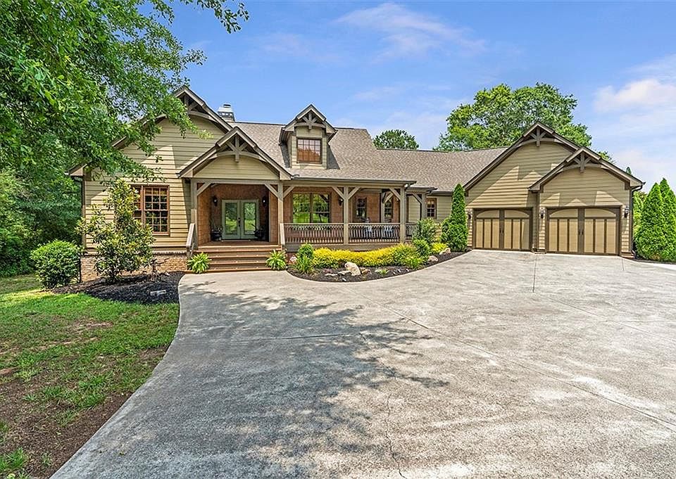 This gorgeous, rustic estate could be yours! Nestled on 4.8 acres and centered on the property, this 3 bedroom, 4 bathroom, custom home boasts numerous upgrades throughout. Open the French front door to a spacious, open living area, kitchen and dining room, with sliding door access to your awesome, covered patio with a fireplace overlooking your pool and wildlife. You will find the primary suite with 2 water closets, separate vanities, his and her closets, walk in shower, and full soaking tub. Across the living room you have two secondary rooms and your 3rd full bathroom. The finished basement has a full bathroom with walk in shower, game room, theater room with wet bar, bonus room, and two storage areas. The terrace level opens up to a second patio, heated diving pool and spa, making it your own private oasis. Downstairs also has a boat garage/workshop. This home was custom built in 2013 and has upgraded woodwork, stonework and paint throughout. A beautiful, winding driveway features stunning water fountain and additional 4 car parking area. This home won't last long!
