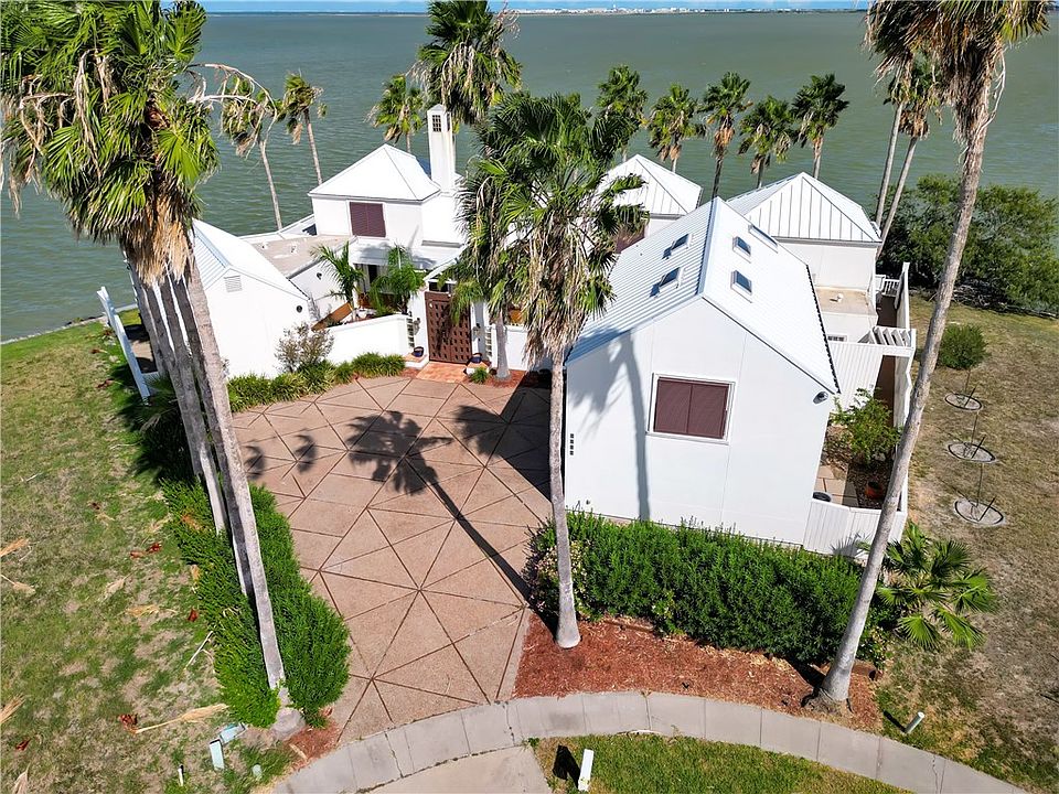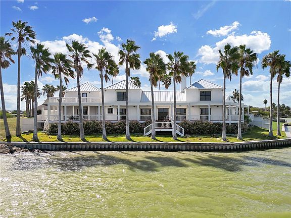 COASTAL LUXURY REDEFINED - Perfectly situated on a private fingertip lot at the end of a peaceful cul-de-sac, this stunning retreat offers ultimate waterfront living. Overlooking the tranquil waters of Oso Bay, this architecturally designed home is framed by swaying palms and breathtaking views. Set on over half an acre, this 4,665 sq. ft. residence features 4 spacious bedrooms and 4.5 bathrooms, thoughtfully crafted for effortless entertaining and relaxed everyday living. As you enter through the gate, a lushly landscaped courtyard welcomes you with its tranquil charm. Continue through the striking antique hand-carved wooden entry door and step inside to discover soaring vaulted wood trestle ceilings, Saltillo tile floors, and expansive windows that bathe the interior in natural light and frame panoramic water views. The open-concept layout flows seamlessly from a striking stone fireplace in the living area to the dining room with panoramic views of the bay, and into a chef’s kitchen outfitted with an oversized island and premium appliances. The primary suite is a true retreat, offering private deck access, serene views, a luxurious bathroom complete with dual vanities, and a spacious walk-in closet with custom built-ins. Notable features include a THREE car garage, a loft office with beautiful second story views and private entrance, an exercise room with a private full bathroom and closet, a SECOND upstairs living room with a full bathroom and a built-in beverage cooler, Bahama shutters, skylights, and windows galore. Designed to embody the quintessential coastal lifestyle, this home offers the perfect balance of modern luxury and laid-back charm — a rare opportunity to own a waterfront masterpiece.