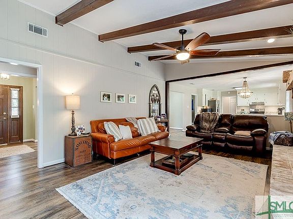 Welcome home to this immaculate completely renovated all brick ranch home that is situated on a corner lot on over 2 acres of land. As you enter the driveway you will appreciate the beautifully landscaped yard w/irrigated flowerbeds, lighting & mature trees. In the cozy great room you will find wood beams, a masonry wood burning fireplace w/lime washed brick & a unique pecky cypress mantle. The open plan kitchen features granite counter tops, stainless appliances, real wood cabinets & under cabinet lighting. A spacious formal dining room offers lots of natural light & also has recessed lighting. The oversized master bedroom has a large walk-in closet, an additional closet & a ceiling fan. In the master bathroom you will find a large walk-in stone and tile shower. Two additional bedrooms both w/ceiling fans. New waterproof luxury vinyl plank flooring, new duct work, new garage doors & motor, new roof, tinted windows, granite in all bathrooms, new fixtures & so much more!
