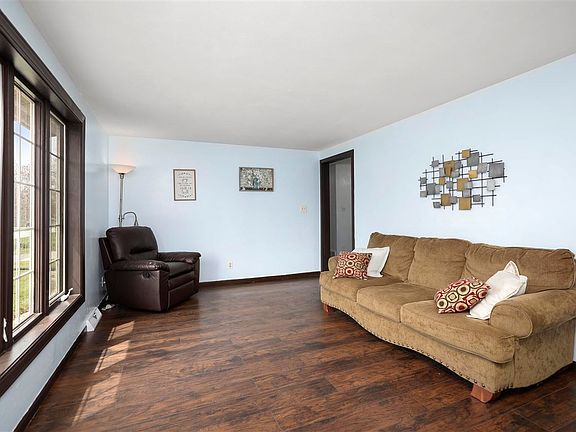 This nicely appointed 4 bedroom, 2 bath ranch has loads of versatile space! Home features, front living room flanked with laminate wood floors, fully applianced eat-in kitchen with white painted cabinetry, great room with cathedral ceiling and gas fireplace, 3 bedrooms and updated full bath on the main, first floor laundry, lower level with family room, 4th bedroom, and second full bath, 2 car attached garage, patio, fenced yard, storage shed, and much more. Buy in confidence home comes pre-inspected and offers a 1 year HMS home warranty.