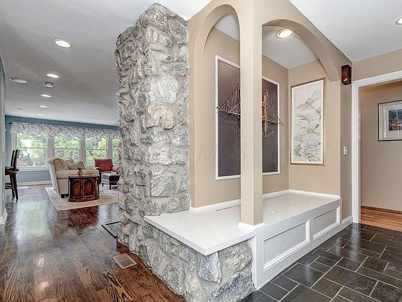 RARE FIND STUNNING UPPER ARLINGTON RANCH ON .42 ACRES. Recently renovated home features gourmet kitchen with granite counters, SS appliances, center island, custom maple cabinets and trim. Detailed craftsmanship throughout the home including custom cabinetry, solid wood floors, chair rail in dining room, and designer laundry/mud room. Enjoy entertaining in large great room looking out onto spacious patio and garden area or relax with morning coffee in comfortable sunroom while enjoying nature. Spacious 4th bedroom (flex room) currently used as large office, could be den, or 2nd living area. This home sits on large park like lot featuring extensive landscaping, aggregate stone patio and walkway and firepit Additional custom built detached building for workshop, storage or craft