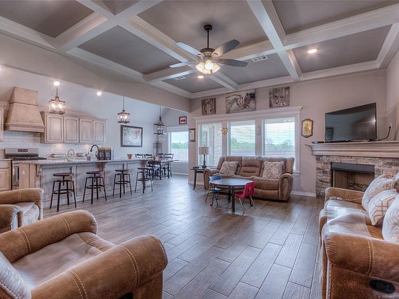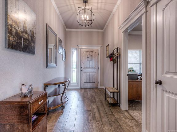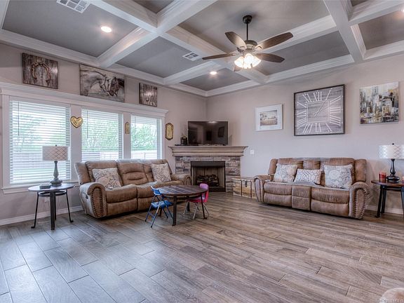 Better than new w/an upgraded floor plan. Gourmet kitchen w/custom cabinets, vent hood & walk in pantry. Master bedroom with tray ceiling, spa-like master bath w/ walk-in tiled shower. Extensive woodwork including crown trim, wood beams and built-ins. Energy efficient foam insulation. 4th bed could be an office. Gutters, garage door openers, and custom blinds included.
