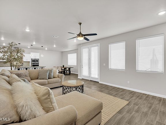 Skip the HOA drama! 2 years old, no HOA, and check out that entertainment center! 4 beds, 3 baths, and a chef's kitchen to host great dinners. Downstairs bedroom and full bathroom for the in-laws (or whoever!), upstairs laundry, and a loft for your office/hangout. Yard's done, no back neighbors, and Horizon is right there. COME SEE IT!