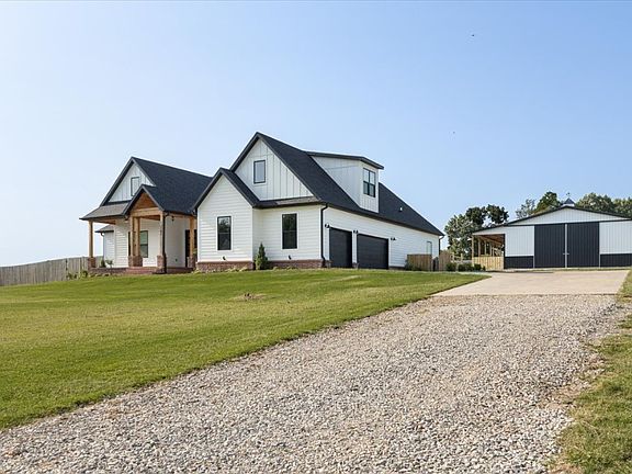 Outside is a covered patio and large open air brick patio w/ fully fenced yard, Bermuda sod, and landscape irrigation. Enjoy over 200 square feet of raised garden beds and the chicken coop. Bring your toys to store in the 46x50 shop with a 14 foot clearance!