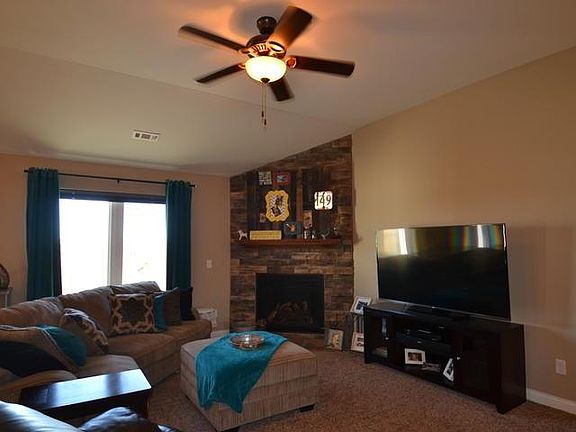 Snuggle by the fireplace in this beautiful move-in-ready 4-bed 2-bath patio-style home. Step inside and you'll appreciate everything you need on one level. With over 1900sf, this home offers vaulted ceilings, large windows & open floor plan. The kitchen has quartz counters, stainless appliances including a gas range w/double-oven & huge walk-in pantry. The spacious master suite offers a roomy walk-in closet & full bath w/dual-sink vanity, custom-tiled shower & jetted tub. You'll also find a bedroom/office w/large windows, 2 more over-sized bedrooms, a full bath & laundry room. Step out to your stamped & stained patio where you can enjoy your back yard bordered by 50+ pine trees. The attached 3-car garage is finished, heated & offers water & a drain. This property also offers 28x38 detached garage w/electricity & insulated doors, plus a 20x16 shed w/electric & water plumbed. Don't miss this one! Contact a realtor today for a private showing!