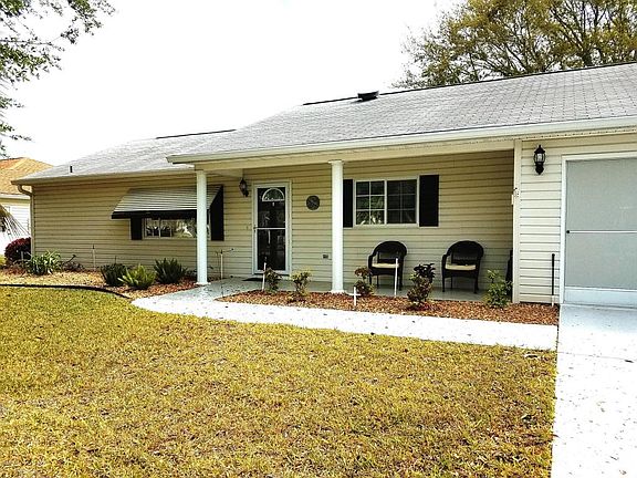 Location and value makes this vaulted ceiling home a must see. The kitchen has tile flooring, granite counter tops, pull-out shelving and a bay window. Laminate flooring in the living areas and master bedroom. Acrylic enclosed lanai that is under heat & air plus a 10X10 patio that is great for grilling. This split bedroom model also has an office area. Re-shingled roof and Bryant AC were installed in 2014. Garage with screen door also has a utility tub and pull down attic storage. Great curb appeal with a nicely landscaped spacious backyard. Furniture is negotiable independent of sale contract.