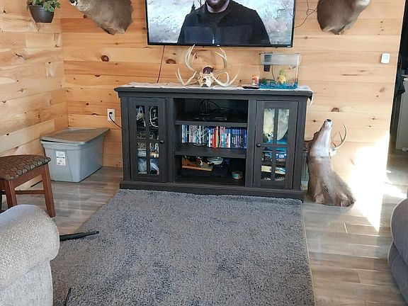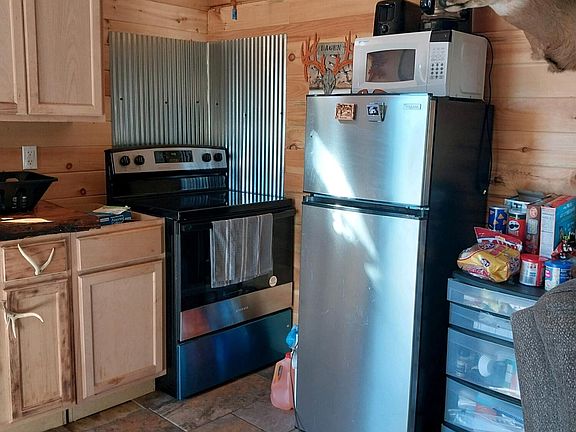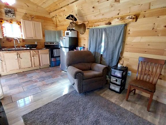 Recently completed construction on a 1 bedroom, 1 full bath cabin on 47 Acres with food plots, 3 trails, 2 creeks and 3 ponds stocked with bluegill, bass and perch. 2 stall garage with a door at each end. Underground electric. 5'' well. 1250 gallon septic tank with double tank and 2,000 sq ft drainfield.