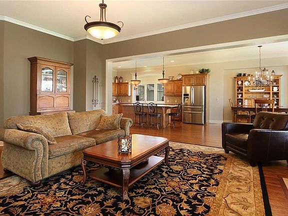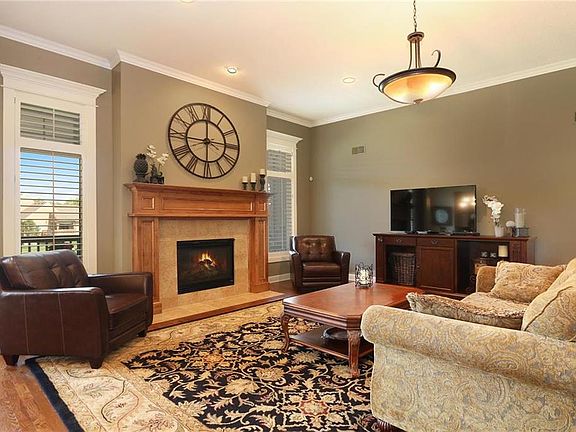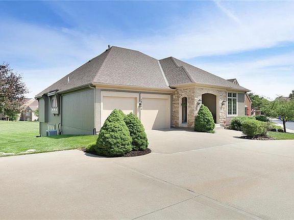 Exquisite Tom French villa with covered deck and patio, backing to green space.Beautiful hardwood floors throughout the main level, plantation shutters, gourmet kitchen with large island,Granite counter tops, iron spindles, designer stair carpet, HUGE finished walk out lower level with 3rd bedroom and full bath, cedar closet and room for a 4th bedroom. Located on a cul de sac in a great location within the Blue Valley school district.