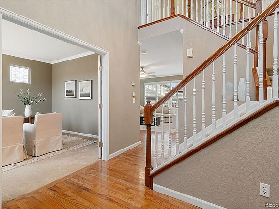 Welcome to your dream home in the coveted Five Parks neighborhood! This stunning property offers uninterrupted views of the entire Front Range and jaw-dropping sunsets over the Flatirons—a true Colorado masterpiece. With Russell Park directly across the street, your front yard feels endless, with no neighbors—just open space and nature. Inside, you’ll find over 2,200 sq. ft. of beautifully finished living space plus an additional 850 sq. ft. of unfinished basement, ready for your vision. The main level features gleaming hardwood floors, sun-drenched rooms, and upgraded appliances, including a washer and dryer that stay. Details like plantation shutters, a cozy gas fireplace, stained glass accents in the office and dining room, coffered ceilings, and designer crown molding elevate the home’s charm and elegance. The upper level offers a luxurious retreat in the primary suite, where you’ll wake up to panoramic mountain views. Enjoy the spa-like five-piece bath and a custom walk-in closet that’s truly a dream. Two additional bedrooms share a Jack-and-Jill bath, offering the perfect mix of comfort and privacy. Car lovers, take note: the oversized four-car garage boasts tall ceilings—ideal for an automobile lift—and is equipped with power and water, making it a true multifunctional space. As a patio home, the HOA maintains the front yard, so you can spend more time enjoying life and less time on yard work. All of this comes with the bonus of living in a vibrant, close-knit community