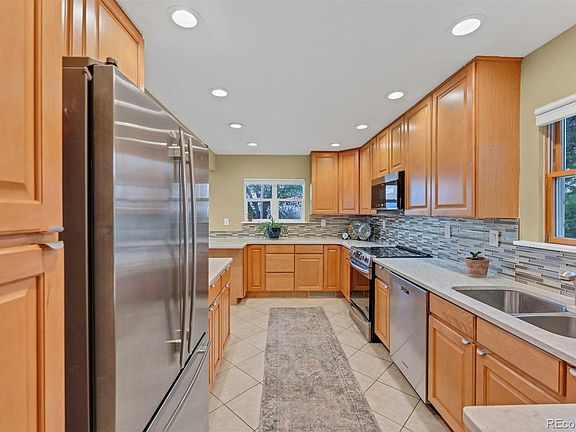 Nestled gently in Green Mountain Estates this mid-century modern home boasts a unique blend of unparalleled location, functional spaces, energy efficiency, and exceptional views, offering an exclusive living opportunity. 2 blocks to open space and less than 10 minutes from shopping, dining, and entertainment are only the start of the attributes. Entering the open concept home enjoy the seamless flow from the living room to the dining area and kitchen, adorned with hardwood flooring and enhanced by the gas fireplace. The kitchen is a delight with lots of counter space, SS appliances, and stylish backsplash. In the living room sliding glass doors and a wall of windows invite you to step out onto the deck. This expansive deck is great for entertaining or choose to relax and enjoy the beautiful sunsets and views. Back inside, ascend the short stairway up to the 3 bedrooms including the primary, with an oversized closet and en suite bathroom. The 2nd and 3rd bedrooms on the upper level share a full bathroom and one bedroom features its own walk-in closet and private balcony! The lower level continues to exceed expectations with an oversized family room full of amenities. The lower level consists of a separate sitting area, a wood-burning fireplace, sliding doors to the patio, dedicated laundry, and ¾ bathroom with custom tile and luxury fixtures. A short stairway leads to the lowest level with backyard access and more storage. Unique functionality continues in the heated portion of the converted 2-car garage offering endless uses. The attached, oversized 3-car garage has room for vehicles, 50 amp service, and built-in shelving. Additionally, a recently converted 2-car garage now functions as a workshop, complete with work benches, a manual garage door to the backyard, and another 50 amp service. An owned 8kw solar system covers the electric bills all year long and if interest rates are an issue, the seller has an ASSUMABLE LOAN at 2.75%! This home is truly one-of-a-kind!