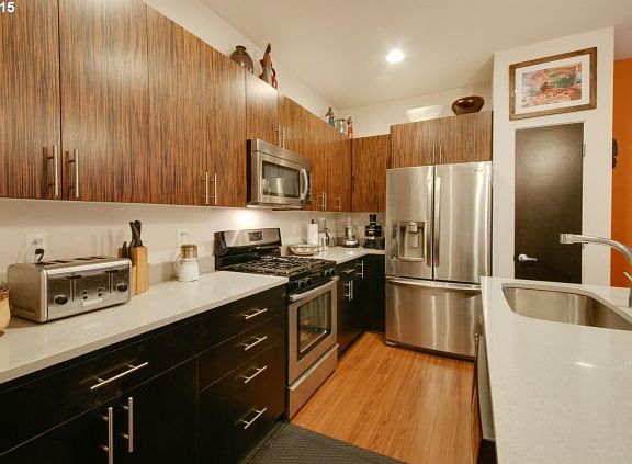 Modern design, abundant natural light, open floor plan & energy-efficient construction. This exceptional home features a vaulted master suite, office nook w/ balcony, coveted 3BD/2BA/Laundry upstairs, private patio & fenced yard. Earth Advantage Certified Construction = low utilities! Enjoy nearby bike trails, parks, transit & proximity to downtown & Sellwood. Attached garage + 2 deeded parking spots.