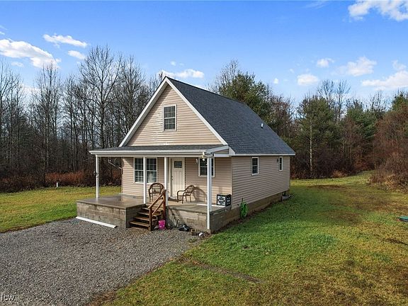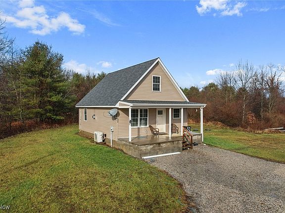 78 total acres. A mix of woods & brushy fields. Seller states excellent hunting for deer & turkey. Older age class of bucks with good trophy potential. 5 established food plots. Multiple gravity feeders. 4 elevated blinds. Level to rolling topography. Good-sized pond & year-round stream through the property. GPS Coordinates are 40.2113, -81.4715. 900 SF Cape Cod style home. Home built in 2021. Large covered front porch. 1 large bedroom on the first floor. The second floor is open with a loft bedroom. Large living room open to the kitchen. Gas stone fireplace. Kitchen with SS appliances to stay with home. Plenty of counter and cabinet space. 1 Full bath with toilet, shower, tub, sink, and tankless water heater. Laundry hook-up. Private well & septic. The seller does not own the mineral rights.