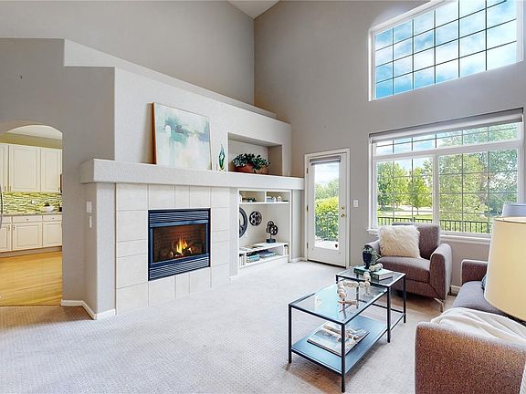 Welcome home to this beautifully-maintained half duplex in the desirable Broadlands community. Located idyllically at the back of a cul-de-sac, this home boasts an open, bright floor plan highlighted on the main level with guest bed and bath, spacious office, dining room that adjoins the living room with vaulted ceiling and gas fireplace, and kitchen complete with stainless appliance package, 42” cabinetry, granite counters and comfortable eating space. Main-floor laundry for your convenience! The upper level contains exclusively the primary retreat including 5-piece bath with walk-in closet. The basement is now finished with a comfortable family room, electric fireplace, finished storage room, and ½ bath with plumbing for shower, if needed. Spend a relaxing evening on the back patio with outstanding views. An amenities-rich neighborhood that includes Indoor Pool, Clubhouse and Fitness Center for your convenience. Step out to walking paths, bike trails and Plaster Reservoir! 1 mile from the Broadlands Public Golf Course and close to retail, restaurants and more!!