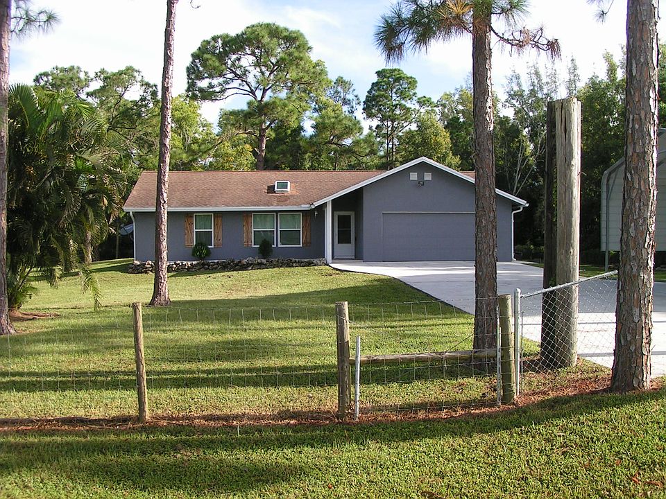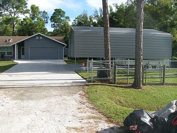 Open,Airy & Bright 3/2/2 on 1.29ac. Enjoy the Acreage lifestyle - bring all your toys and pets. Impact windows including garage door & skylight, new water system enclosed for weather protection & longevity, gutters, updated master bath, fully fenced, elec. gate. A/C - 2015. Keyless pedestrian garage door. Freshly painted interior. Huge metal carport (2016) ( 25w X 30L X 14H ). No Pond. Lovely, well kept property. Huge, country rear porch. Extended concrete driveway including carport. Elementary and Middle Schools accross the street!!!