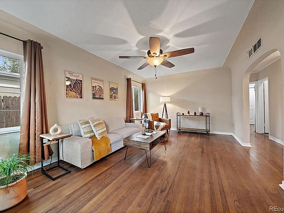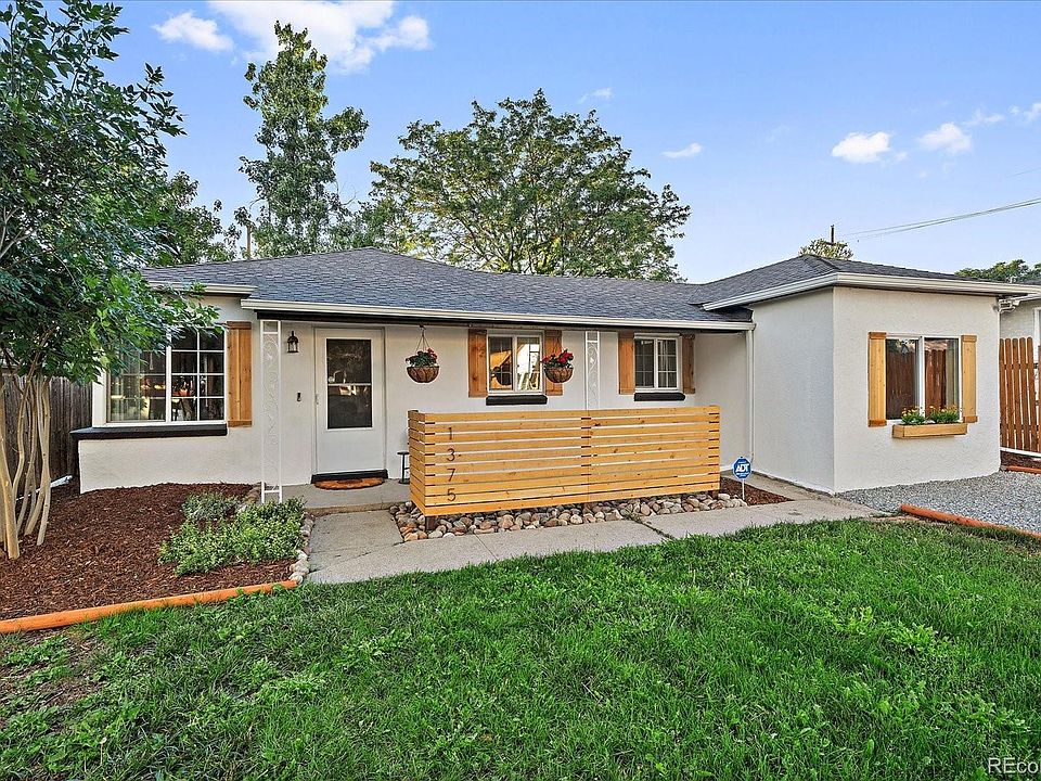 Welcome home! This charming and beautifully renovated 3-bedroom, 1-bathroom house is nestled in the heart of the Eiber neighborhood, steps away from James J Richey Park and just a short 5-minute walk to the RTD light rail station. This well maintained home has seen recent updates that include new exterior stucco and paint, fresh interior paint throughout, new flooring in the kitchen, dining room, and bedroom area, a fully renovated covered patio, updated sewer line, newer Pella windows, new gas range & oven, updated cabinetry, and a brand-new fence. The roof is newer and has been recently inspected, ensuring years of worry-free living. Inside, you'll be welcomed home with original hardwood floors and natural lighting throughout, adding character and warmth to the living spaces. This home also offers central air conditioning to keep you cool in the summer, while the spacious, new and fully landscaped yard offers a private oasis for relaxation and entertainment. Commuting is a breeze with downtown just a 12-minute drive away, Wheat Ridge in 5 minutes, Sloans Lake in 7 minutes, and Golden only 10 minutes. Whether you're headed to work, the mountains, or out for a night on the town, you'll appreciate the home's unbeatable proximity to everything you'll ever need. With two driveway parking spots and two additional street parking spots, you'll never have to worry about finding a place to park. With no HOA, this home offers both freedom and convenience. Don't miss the chance to make this house your home—schedule a showing today!