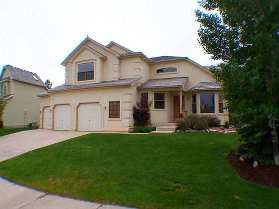 Please enjoy visiting this beautiful five bedroom home, close to the mountains of Peregrine. This is a true Colorado feel. This D20 home is close to parks with great views of rock formations and mountains, features large bedrooms with laundry on upper level. Lots of hardwood and wood trim along with 6 panel wood doors. Two sinks in upper main bath. Landscaped back yard with green belt and trees behind offering nice privacy. Shows like a model. Move-in ready.