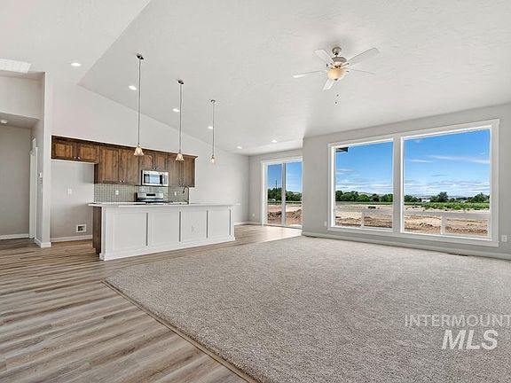 The Shoshone is a single-level home with a well thought out split bedroom design. Located in Weiser in the new Sundance Pointe subdivision. This home is a top favorite. 4 bedrooms 2 bathrooms w/ 3 car garage. The open floorplan provides great space for entertaining and gathering. The vaulted ceilings and large windows in the main living area provide excellent natural light. 9ft ceilings throughout the rest of the house. Easy to maintain LVP in high traffic areas. The kitchen features stainless steel appliances, including gas range, generous sized pantry, quartz countertops, & large island providing extra seating and workspace. The 14x17 Master suite boasts dual vanities, step in shower, and large walk-in closet. Outside, the yard will include front sod and rear seed, and full auto sprinklers w/ delivered pressurized irrigation. Low cost Natural Gas included! Overall, the Shoshone is a well-executed floorplan with a great entertaining area.