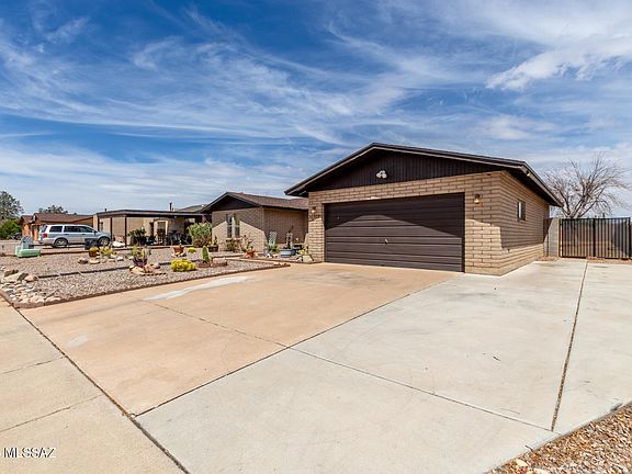 Home, sweet home! This gorgeous 3 bed, 2 bath home in Sierra Vista is lookin for its new owners! Great curb appeal, a no-fuss desert landscape, 2 car garage, and an RV gate are just the beginning. Inside you will find a spacious great room w/vaulted ceilings, durable tile flooring, warm palette, and a wood-burning fireplace. The gorgeous kitchen is equipped w/ample cabinetry, a pantry, granite counters, SS appliances, and a skylight for plenty of natural light. Relax & unwind in the primary bedroom, boasting soft carpet, dual mirrored closets, and a private bath for added convenience. Lastly, the expansive backyard w/its covered patio and extended seating area, is a blank canvas ready to become your own private oasis! Don't miss out!