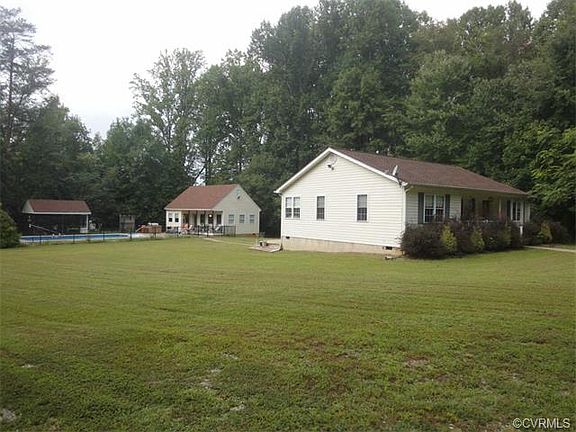 Wonderful country retreat - four bedroom, two bath rancher surrounded by 3.6 acres of privacy, driveway through the forest leads to the private homesite with 18x36 inground salt water pool (3-8 feet deep) with gazebo, outdoor shower, gas grill & POOL HOUSE with recreation room, bedroom/office, full bath & covered porch! Ideal for in-law, guests, recreation, or home business. POOL HOUSE has own septic & tankless water heater & separate meter, shares well with the main house. Main house has vaulted great room with corner gas fireplace, open floor plan, Verizon broadband/Wifi in house & at pool, all appliances convey including refrigerator, front load washer/dryer, kitchen range, microwave/convection oven. House has tankless water heater. House is wired for whole house generator. New roof in 2005. Lots of storage space with three sheds, one is very large with one-car garage door on front, approx. 14x20. 35 minutes to St. Francis Hospital, approximately 12 miles from Powhatan Courthouse area.