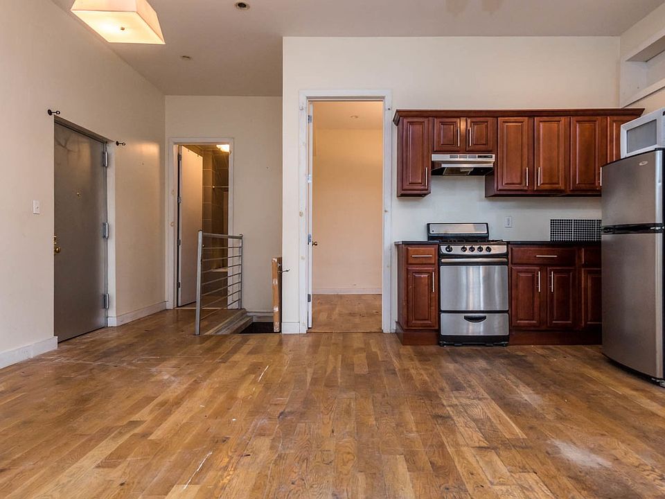 Giant 2 bed duplex. 1 Bed room is in the basement and is about 500sf. Currently is sound proofed as the previous tenants used it as a recording studio. The living room is spacious and lofty. I'm an agent for Nooklyn.com and can show you any of the awesome listings on our site. https nooklyn.com/agents/716-steve-schaefer