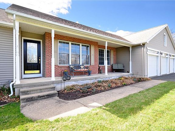SUFFIELD SHOW STOPPER Original Owner and Custom Built by Brian Doyon of Suffield offers this Ranch style home with over 3100 square feet leaving you amazed at all that it offers 2 generous bedrooms, 2 ½ bathrooms and loaded with windows and skylights making this home bright and crisp with sunlight. Enjoy vaulted ceilings and neutral paint throughout making this home feel larger than it is. Home proudly rests in beautiful neighborhood setting with spacious yard and just enough trees to cascade shade over your level 2.25 acre lot. Just past your covered front porch you will find a spacious living room & family room, updated granite kitchen, laundry room, plush carpets, master suite with full private bathroom, walk-in closet and access to your outdoor treasure. Finished lower level features a bathroom along with a full professional work out room and more than ample storage. Outside is sure to impress with its large level lot with mature plantings, shed, detached 1 car garage in addition to the attached 3 car garage, entertaining deck with paver walkway that leads to your fenced heated inground pool crowned with gazebo making this an ideal outside oasis and what's more impressive is the unseen highlights including a underground sprinkler system and full curtain drain around the entire home This house is a must see and truly wont last