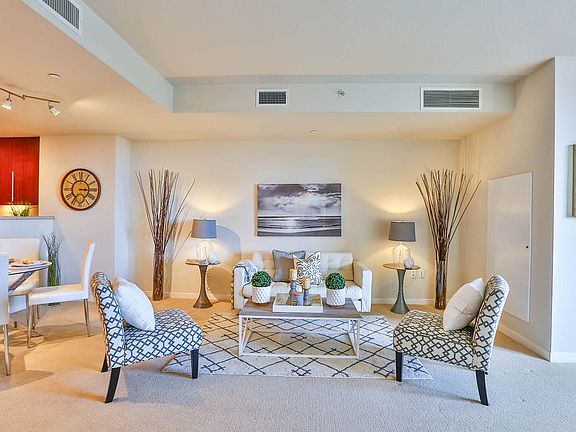 A Step Above at San Jose's Skyline Complex. This 1 bedroom, 1 bathroom condo at Skyline in San Jose offers unbelievable views of the east foothills, downtown, and beyond from your balcony. The 891 sq. ft. home (per tax records) offers a spacious open floor plan featuring a beautiful kitchen with granite countertops, stainless steel appliances, and so much more. A washer and dryer in the unit and assigned 1-car parking are included. Current HOA dues are $402.86 per month.Skyline's amenities include a fitness center, pool, hot tub, cabana, barbecue area, and dog park. Enjoy a great location with easy access to the 85, 87, 101 and 280 freeways. Skyline is in downtown San Jose adjacent to Tamien Station for Caltrain, light rail, and bus lines. You are just minutes away from the proposed Google development, Willow Glen, and numerous tech companies. 1