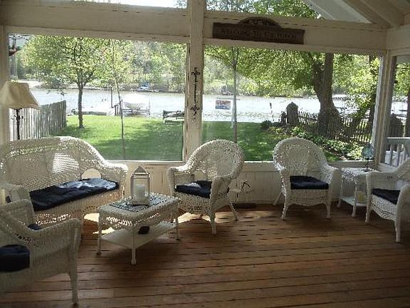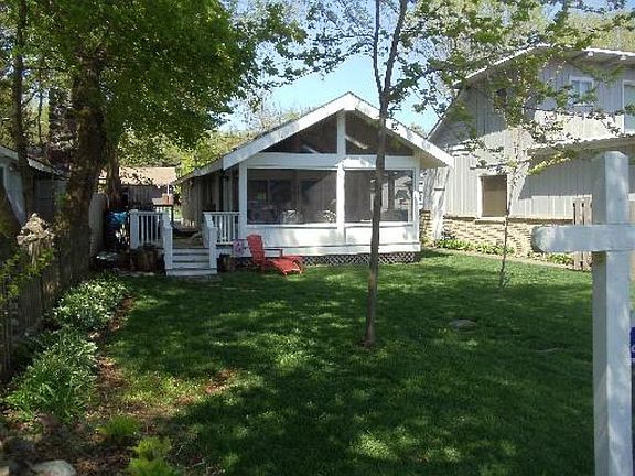 FOX RIVER AT YOUR DOOR! Recent rehab, New 16 foot Screened Redwood lumber porch. New side deck, Kitchen remodeled, new appliances. Surround wall speakers. Updated electric. Refinished hardwood floors. Easy access stairs to storage in the newly insulated attic. "Perma-Sealed" crawlspace w/ new sump pump. City water & well hooked up for yard watering. Newer roof. Boat lift included. Great opportunity ~ WATER, WATER!