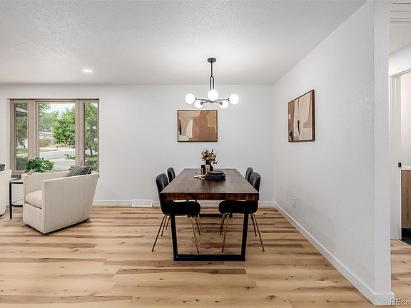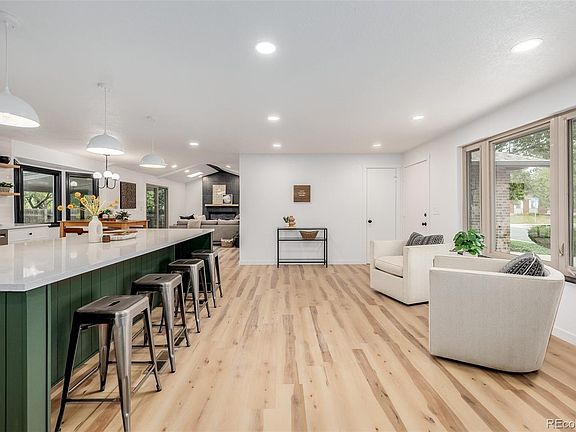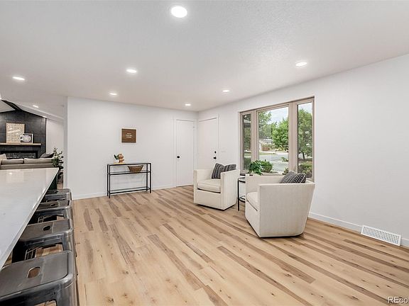 Welcome to your dream home! This beautifully remodeled brick ranch in a highly desirable neighborhood features a secluded entryway, ensuring your privacy. You’ll be greeted by fresh cement on the porch, patio, and garage, setting the tone for modern living. Step inside to discover a magnificent open-concept design with blonde flooring that exudes warmth and sophistication. The chef’s dream kitchen boasts elegant sage green cabinets complemented by chic lighting fixtures and perfectly placed recessed lighting throughout. Gather in the spacious family room, adorned with vaulted ceilings and a elegant electric fireplace, making it an ideal space for entertaining. Step outside to your fully landscaped backyard, a true oasis that offers a private entrance to park trails, perfect for nature lovers. Retreat downstairs to an oversized family room, featuring a beautifully tiled wet bar with a mini-fridge, offering endless possibilities for relaxation and fun. Plus, there’s a built-in office area for all your needs. Another large bedroom downstairs, complete with an egress window and spacious closet, adds to the appeal. The generously sized laundry room offers storage solutions for all your needs, making this home both functional and stylish. Located within the Boulder Valley Schools District, Convenient access to I-36, I-25, C-470 and Hwy 287. Don’t miss out on this incredible opportunity! If you’ve been searching for the perfect home in Broomfield with NO HOA, your wait is over! Come see this gem before it's gone!