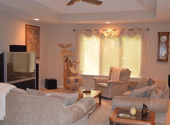 Privacy and tranquility when you look at this immaculate three bedroom home built by Aldrich Builders located in an established neighborhood with walking trails close by. You will absolutely love this split floor plan with an open concept Cathedral ceiling living room and kitchen area. Outdoor patio for grilling out with a large back yard for children to enjoy and a family fire pit for roasting marshmallows. Many mature trees and beautifully landscaped. There are two empty lots that surround this home which make a very secluded feeling.
