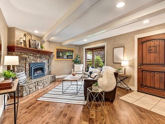 Quintessential west side cottage in the heart of Bend's downtown area. This cottage lives large with 1830 square feet, 3 bedrooms, 2 bathrooms and nice outdoor entertaining areas. Enjoy living near parks and entertainment and being just minutes from trail access. Beautiful renovations throughout the home including custom rock work inside & out, kitchen with alder cabinets & granite counters, distressed hickory wood & tile flooring. Floor to ceiling rock fireplace provides warmth and charm. Large master suite upstairs w/office area, exterior balcony and master bath w/claw foot tub. Corner lot with low maintenance landscaping. 2 tiered deck & entertaining area w/privacy fencing. Single garage with alley access.