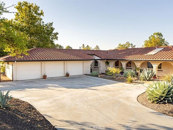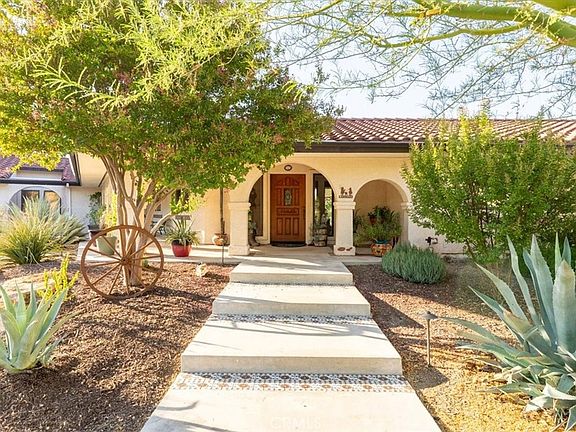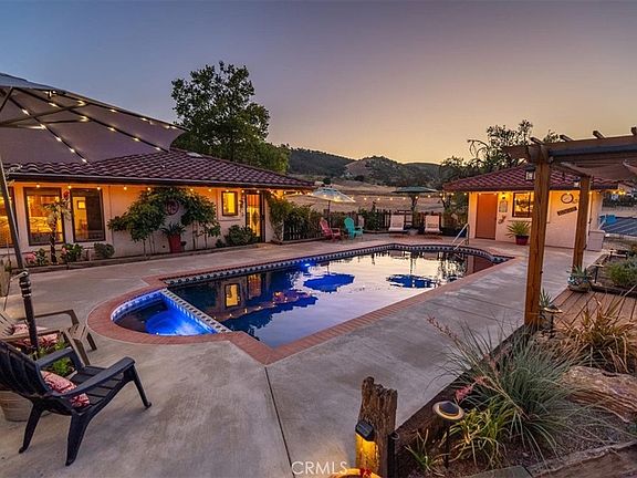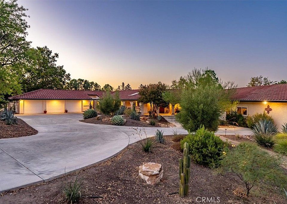 Nestled in the heart of Paso Robles’ wine country, this captivating 2,940± sq. ft. single-level Spanish-style estate offers both elegance and modern amenities. The home features 3 spacious bedrooms and 3.5 bathrooms, a formal dining room, a charming breakfast nook, and a living room with a stunning rock fireplace. The recently remodeled kitchen boasts natural quartz countertops, sleek black stainless-steel appliances (updated in 2021), and a walk-in pantry, creating the perfect space for culinary creativity. The primary suite includes its own cozy fireplace, while the home also features an office and laundry for added convenience. Ideal for entertaining, the property includes a versatile 1,100± sq. ft. flex room with a western-style bar, along with an expansive covered patio that features an outdoor kitchen and a horseshoe pit. The outdoor area is truly a retreat, complete with a solar-heated swimming pool, spa, and a portable safety fence for peace of mind. The drought-tolerant landscaping is maintained by drip irrigation and fertigation systems, ensuring a low-maintenance yet vibrant yard. Additional property features include 36 solar panels and 2 Tesla batteries for electrical backup and energy efficiency, along with solar heating for the pool and spa. The 3-car garage and a large workshop with roll-up doors provide ample space for vehicles and projects. Two metal outbuildings (1,200± sq. ft. and 1,440± sq. ft.) offer additional storage or workspace. The estate is fully fenced with a 6-foot chain-link fence and gated entrances for privacy, including an automatic front gate and a separate rear gate leading to the main acreage. A 5,000-gallon fire water storage tank with a hydrant system per Cal Fire standards that ensures extra security and peace of mind. Property includes a 40 ft long Destination Trailer with 50 AMP Hookup with 3 Pull outs. This remarkable property blends luxury, comfort, and functionality, offering a private and serene lifestyle in Paso Robles' coveted westside.