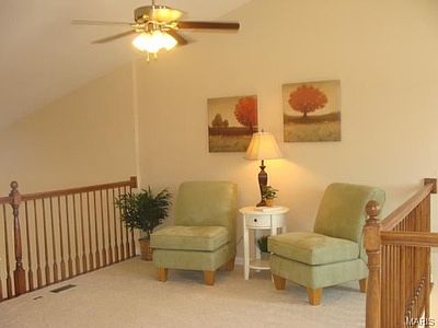This stunning townhome is filled with updates! End unit on a dead-end street for privacy & peace. You will appreciate the laminate floors in the entry foyer, which lead you to the kitchen with quartz counters, subway tile backsplash, double bowl stainless steel sink & updated faucet, under cabinet lighting & stainless steel appliances. The soaring vaulted ceiling in the living room makes the space bright & open! Main floor master has 11 ft ceilings & a walk-in closet. Handy main floor laundry & full bathroom with double sinks & a seated shower. Upstairs is an open loft perfect for an office, playroom, craft room...you decide! A 2nd master bedroom with walk-in closet & a full bathroom with a huge linen closet are next door. The slider has a palladian window above & exits to the patio & vinyl fenced yard. Lower level with an egress window includes built-in shelves for great storage. Fun neighborhood pool, playground & clubhouse. Ft Zumwalt (North) Schools. See this gorgeous home today!