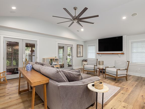 Welcome to 1375 Nye Street, a beautifully renovated contemporary ranch in Charleston's peaceful Lenevar neighborhood, where spacious lots and no HOA provide a rare sense of privacy and freedom. This brick home is not in a flood zone has been thoughtfully & meticulously upgraded. Inside, the vaulted ceilings and open floor plan create an airy, inviting atmosphere, accentuated by custom built-in cabinets in the living room and a cozy gas fireplace in the dining area. The gourmet kitchen is a cook's dream, featuring a gas range with a stylish hood and a sizable butler's pantry offering plenty of storage. The primary suite is a sanctuary with views of the expansive backyard, French doors leading to a private deck, dual extended vanities, a large steam shower, and an walk-in closet.An additional set of French doors opens into the office, ideal for those who need a quiet workspace at home. A spacious sunroom brings the outdoors in, offering relaxing views of the lush backyard. Step outside to your very own retreat, complete with a deck, patio, firepit area, and a charming 144 sq ft guest cottage, all shaded by majestic oak trees. Additional highlights include new electrical and plumbing, a tankless water heater, and a fully encapsulated crawlspace with a dehumidifier. This property is located less than a mile from the $300 million mixed use development off of Sumar St that will offer parks, shopping, and dining. Old Towne Creek Park is located across the road from this neighborhood and is a 67 acre marsh front site that is slated to open in the near future. This home is located just 10 minutes from Downtown Charleston and 20 minutes from Folly Beach, this home combines a convenient location with timeless charm. Schedule your showing today!