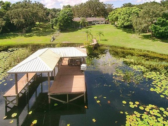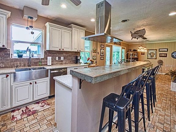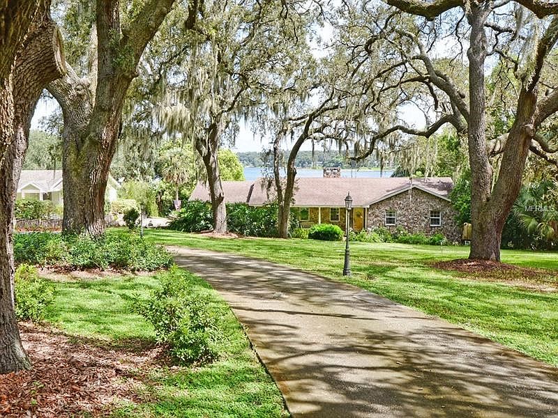 Florida Lakefront Living at its best with majestic oaks sets a calming tone for entrance to a whimsical front courtyard with stone walls & flagstone pavers. 1.57 ac. situated on spring-fed West Crooked Lake in Eustis off Old Mount Dora Rd. 4 bed (2 master suites, one located in Fla. style walkout basement & could easily be used for in-laws or possible rental), 3 baths(updated). Recently remodeled chefs delight kitchen boasts solid wood cabinets w/self-close drws&drs, all ss appliances, 4 door Showcase refrig., Verona gas stove & oven w/overhead ss vent hood, a QUIET 48db dishwasher, solid surface countertop, farmhouse sink, prep sink w/instant hot water, porcelain tile backsplash, additional pantry. Repurposed barn wood from PA complements an eat in kitchen /entertainment bar top . Crown molding, foyer entrance w/closet. Covered boathouse w/metal roof, bench seating, swim ladder, composite wood planks. Oversized 2 car garage w/built in storage, wash basin & entrance door to backyard. 2 fireplaces (one decorative), insulated windows,sec.system, keyless entry locks , large shed w/pull up door & ele , huge 2 level covered atrium screened lanai w/hot tub to relax while overlooking rear grounds down to the lake. Newer pressure tank for well, 2016 survey. Only mins. to historic downtown Mount Dora, Eustis & Tavares Approx. 40mins to Orlando or Sanford International Airports, all the attractions & around an hour drive to either coast.