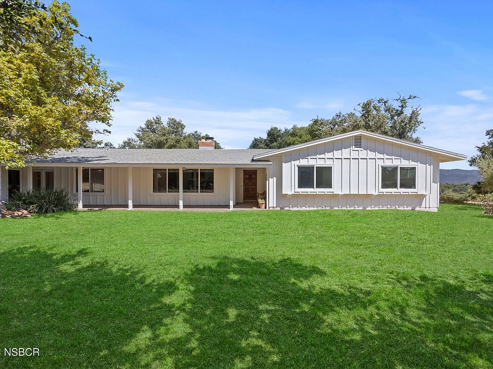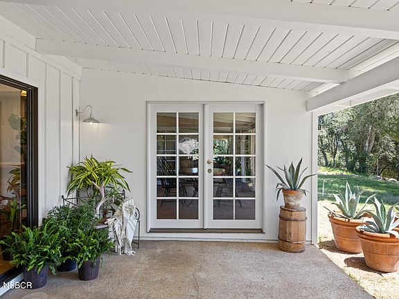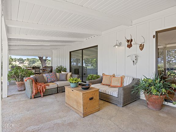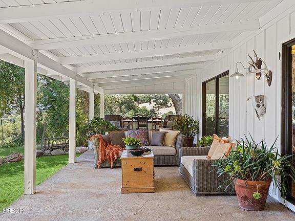 Hilltop haven where privacy and tranquility abound, this serene 4.73 acre ranchette awaits. Enter up a private driveway leading to a sanctuary with dramatic, unobstructed views of the Figueroa and San Rafael Mountains. Nestled among garden spaces and mature oaks with treetop vistas, this single-story home boasts 4 bedrooms and 3 bathrooms across an impressive 3,714 square feet of open-concept living. The home features an array of light-filled living spaces, including an oversized great room with soaring, vaulted ceilings and windows that beautifully wrap around the house framing mountain vistas. The great room flows seamlessly into the formal dining room with access to the covered porch with entry into the spacious chef's kitchen. The kitchen is replete with a top-of-the-line Viking range and stainless appliances, bespoke cabinetry, and a custom eat-in breakfast bar. It offers the perfect blend of classic charm and modern design, with views out the dining room windows and into the family room. The family room features a wood-burning fireplace and entry to the porch area, that is ideal for indoor/outdoor living and entertaining under the canopy of trees or dining under the stars. The formal living room also features a fireplace with pastoral views and a bookcase-lined wall with a hidden passage offering a second entry into the privately situated 4th bedroom, making it ideal for an office space or tranquil retreat. The generous primary suite offers a newly renovated ensuite bathroom, walk-in closet, and entry to the porch with perfectly framed mountain views and surrounding landscape. Three additional well-sized bedrooms each offer views of the countryside. The attached 2-car garage includes a separate workshop area and easy access to the front yard. The barn is ideal for equine use, with a new roof and three large stalls. The barn doors open to separate front areas that would be perfect for additional workshop space, a gym, home office, or artist retreat so many options to make this barn a unique space. This property is truly a rare find in an amazing private hilltop setting, offering serene living with one of the most impressive vistas, and only minutes from Santa Ynez, Los Olivos and vibrant downtown Solvang.