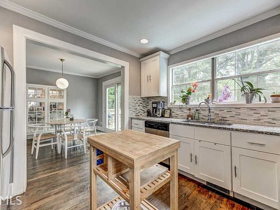Bright and Beautiful Bungalow! A Landscaped Walkway welcomes you inside. Hardwood Floors begin in an Open Family Room with Fireplace and continue into a Sun-Soaked Dining Room. Stainless Steel Appliances shine in the Renovated Kitchen with Granite Countertops, Classic White Cabinetry, and Custom Tile Backsplash. Two Main Level Bedrooms share a Hall Bathroom. Upstairs, a Private Master Suite delivers Spa-Style Bathroom with Dual Vanities and Frameless Glass Shower. Entertain with ease on the Large Rear Deck with Mounted TV overlooking a Flat, Fenced Backyard with Swimming Pool perfect for pets or play. An additional Side Deck offers the perfect place to gather and grill-out! STEPS to The Westside BeltLine Trail and Lee+White Food and Beverage District with local favorites like Monday Night Garage, Boxcar, and Wild Heaven Brewery.