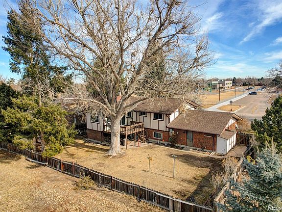 Wonderful Lakewood home in desirable Sun Valley Estates. Great front curb appeal with covered porch. Incredible lot with huge flat back yard and mature trees. Big deck and wonderful mountain view. Backs to open area near East Reservoir. Faces east for faster morning snow melt. Across the street from Kendrick Lakes Elementary. Updated kitchen with stainless appliances, new flooring, and plentiful cabinets. Awesome skylight brightens the space. Dining area adjacent to kitchen. French doors lead to wonderful bright rear addition with windows on every exterior wall; ceiling fan; sliding door to rear deck and yard. Large upper living room also flooded with natural light. 2 bedrooms upstairs with ceiling fans, served by full bath. Big lower-level family room with gas log fireplace. 2 additional bedrooms on lower level and three-quarter bathroom. Laundry room with utility sink; washer and dryer included. Huge, attached garage with storage closet. Not to miss features: leaf guards on gutters, newer windows throughout, abundant storage, water softener, evaporative cooler, sprinklers, and back yard shed.