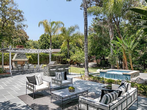 Welcome to this exceptional estate, a splendid representation of the classic Monterey Colonial style from the 1940s. Architect George Postle masterfully designed this residence, which is situated within the prestigious Oak Knoll community. The house is nestled on a gated and private lot spanning over 38,000 square feet, adorned with beautifully landscaped gardens teeming with lush greenery, majestic oak trees, palm trees, and numerous inviting sitting areas.Upon entering, you will be greeted by a warm and inviting two-story foyer and a grand sweeping staircase. The living room, boasting a cozy fireplace and a comfortable sitting area with built-in bookshelves, provides the perfect space to unwind. For moments of leisure or a movie night, the media room/library offers a serene atmosphere and can also be utilized as an additional bedroom if desired.The gourmet kitchen features a central island and a separate butler's pantry, ensuring convenience and functionality. Indulge in formal dining in the elegant dining room or opt for a more relaxed meal in the adjacent den. The main level is completed by a laundry room and a guest bedroom.Upstairs, retreat to one of two suites, both exuding a generous amount of natural light and boasting en-suite bathrooms. These suites provide a tranquil sanctuary with their large windows and inviting ambiance.The lower level of the house accommodates a spacious family room with a fireplace and a bathroom, offering ample space for relaxation and entertainment. Step outside from the kitchen or living room onto the thoughtfully designed and expansive outdoor entertaining area. This magnificent space is complete with an outdoor fireplace, a built-in barbecue, and a wrap-around patio, where you can immerse yourself in the soothing sound of water trickling from the spa down to the fountain.With a touch of personalization and modernization, this residence has the potential to become your own private paradise. Additional amenities include a two-car garage, extra parking, a charming brick-wall driveway, and an electric gate. The location of this estate is also highly desirable, as it is conveniently situated near Pasadena's cultural center, the Huntington Library, the Rose Bowl, and Old Town, offering an array of cultural and recreational opportunities.
